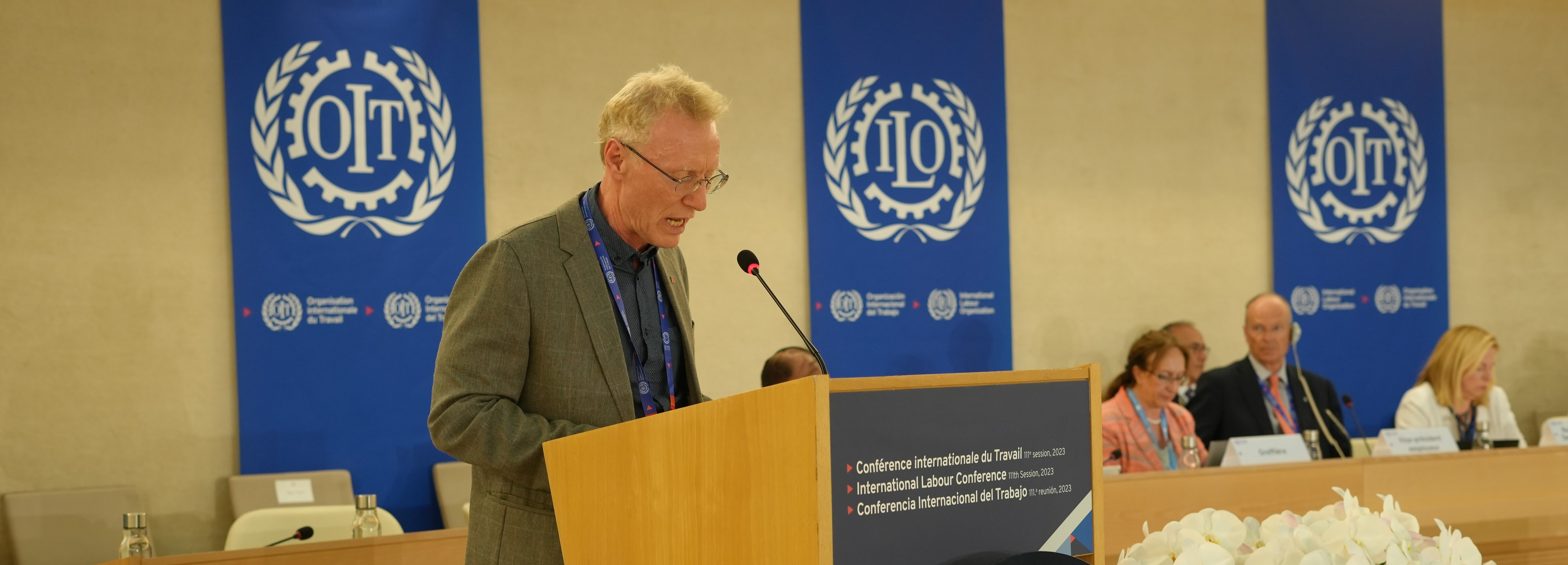 - Vi må stå opp for menneskerettigheter for alle, uavhengig av kjønn, seksuell legning, kjønnsuttrykk eller kjønnsidentitet, sa LOs Steinar Krogstad. Han tok LTBH+-rettigheter i forsvar foran regjeringer, arbeidsgivere og arbeidstakere fra 187 land på ILO-konferansen.