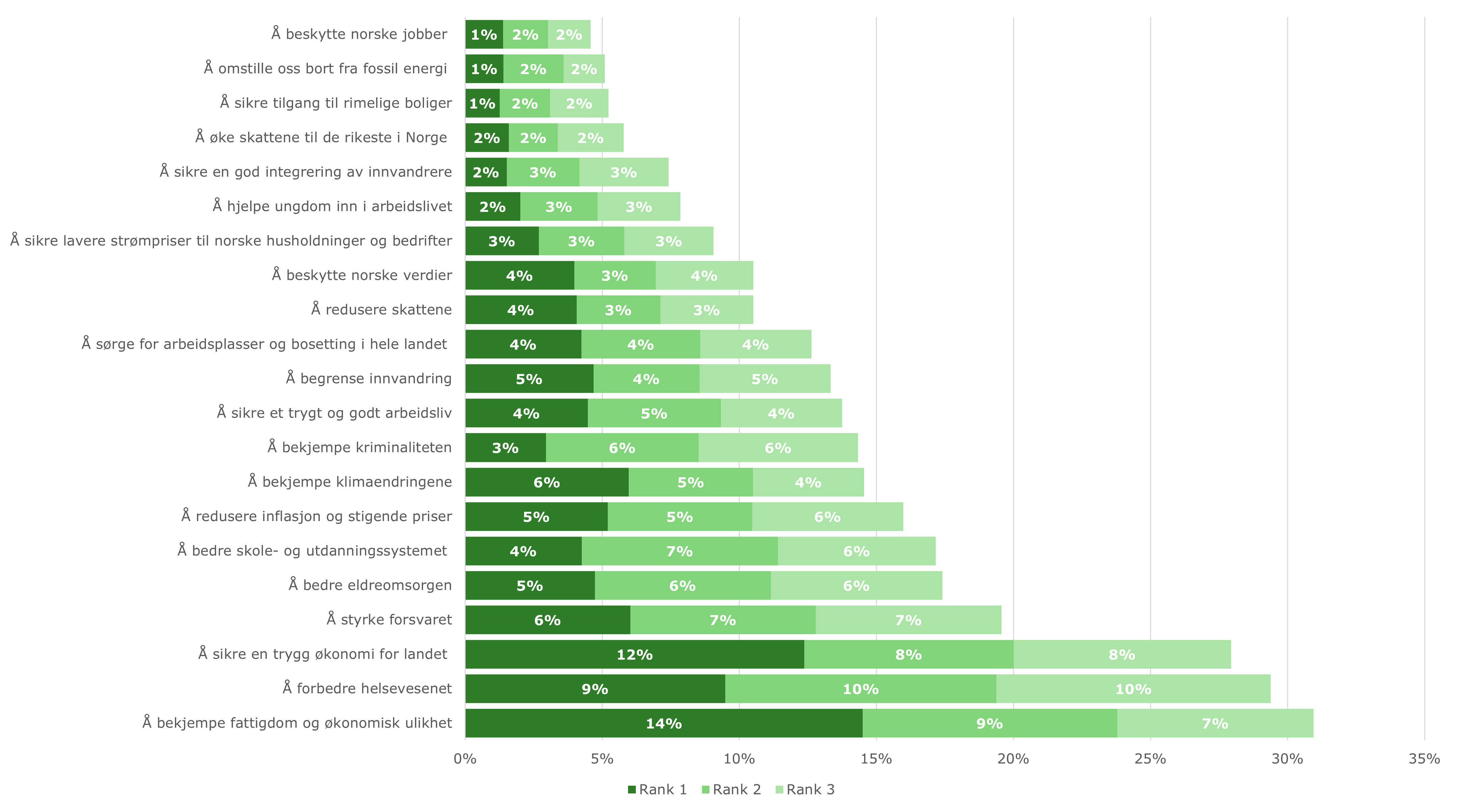 Over tid har LO spurt den norske befolkningen om hvilke tre saker de mener er de viktigste at politikerne prioriterer. Å bekjempe fattigdom og økonomisk ulikhet kommer på topp hver gang. I undersøkelsen gjort rett i etterkant av Stortingsvalget i september mente de fleste at det var den aller viktigste saken. Det var også flest som hadde saken på sin topp tre-liste.