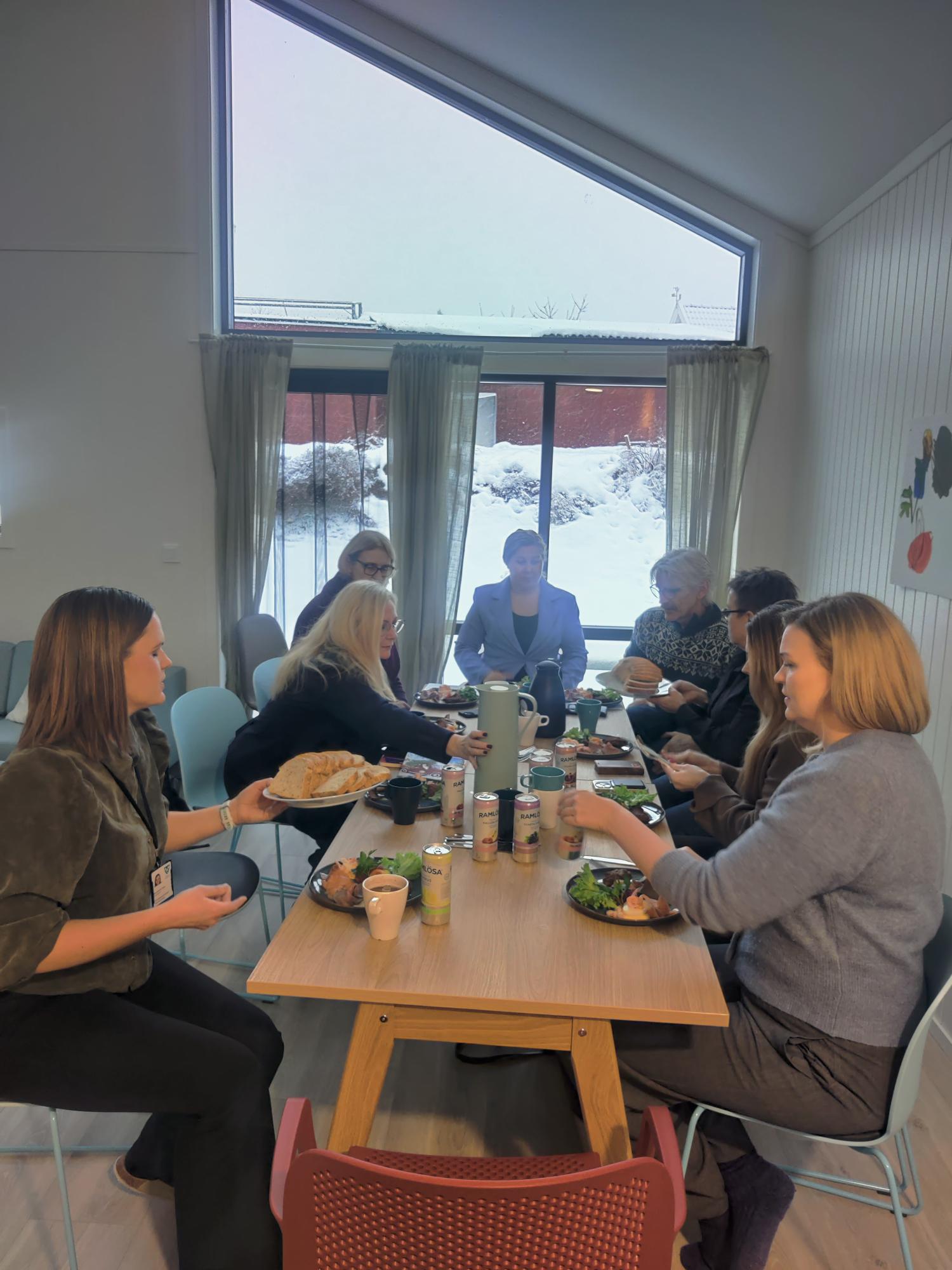 Stortingsrepresentant fra Arbeiderpartiet, Kari Henriksen, sammen med Mette Gundersen og Dagfinn Svanøe fra LO i Agder, fikk omvisning i en av boligene som de ansatte bor i når de er på jobb. Her sammen med avdelingsleder Anne-Grethe Neset og leder for habiliteringstjenesten, Oddbjørn Hagen.