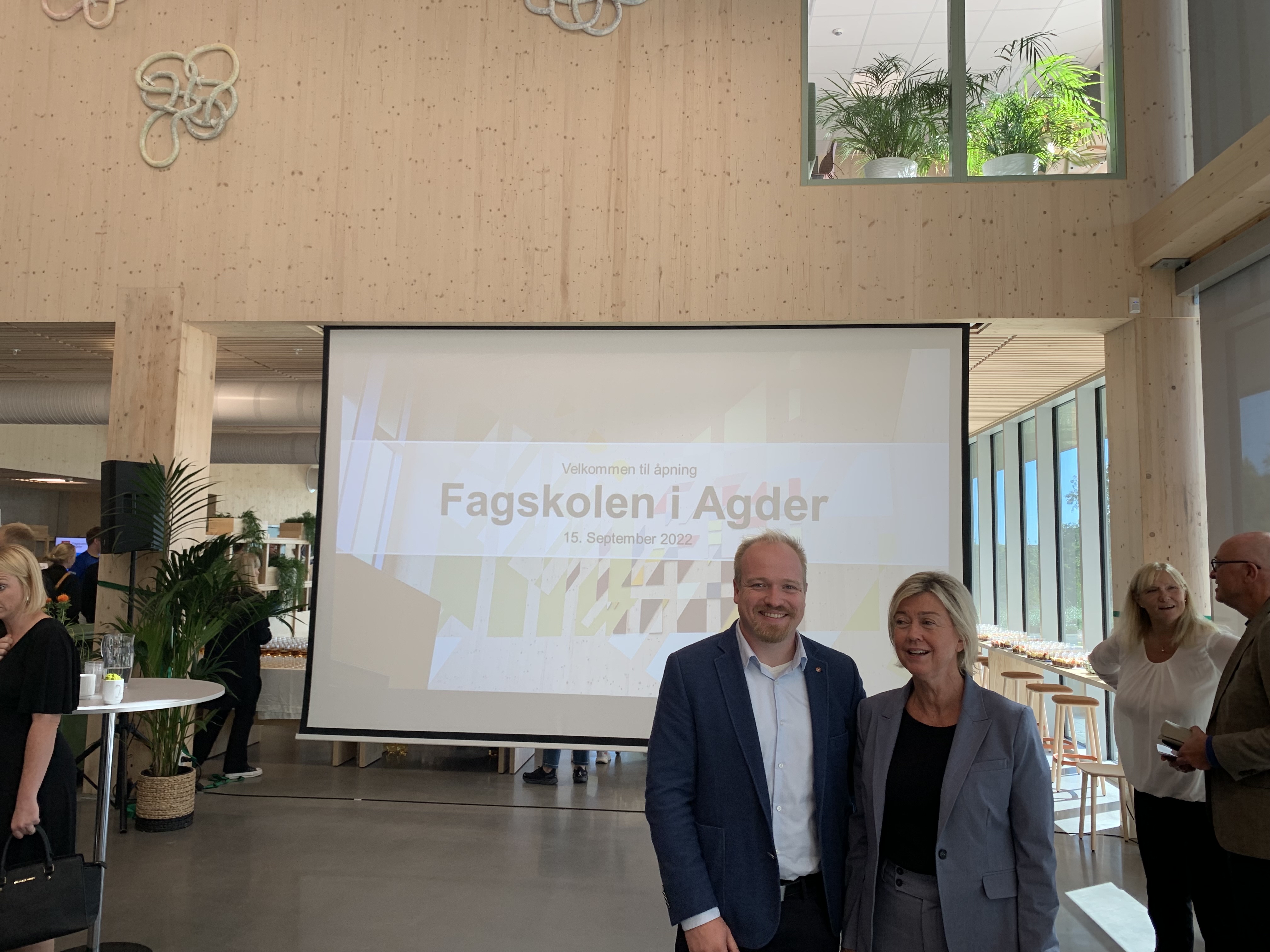 Fylkesordfører Arne Thomassen, statsforvalter Gina Lund og ordfører i Grimstad, Beate Skretting, stod for den formelle åpningen av den fagskolen, som har vært åpent for elever siden studieoppstart i august.