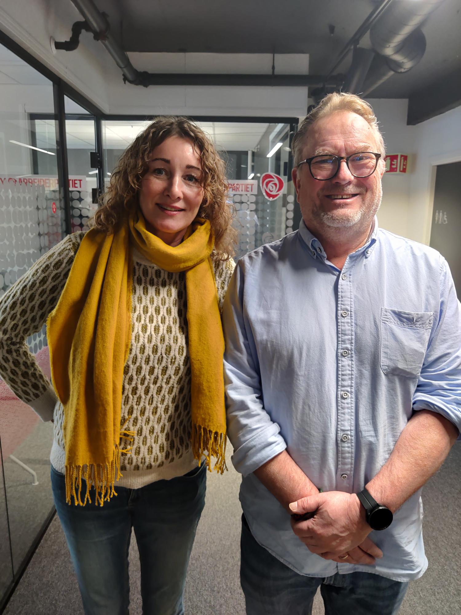 Nina Galta sammen med Ole Jarl Madland på LO Agders kontor i Kristiansand.