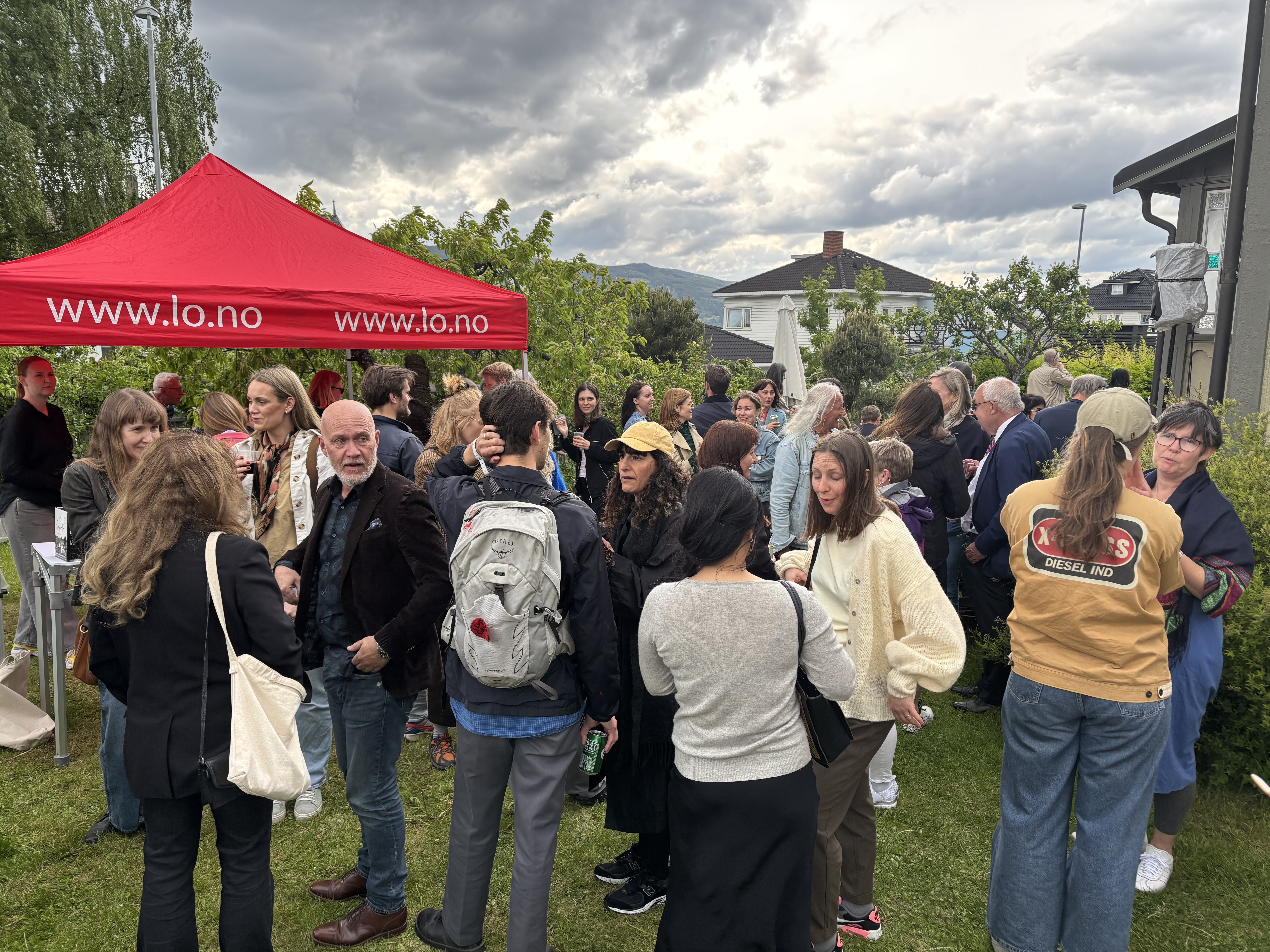 Det var god stemning, mat og drikke da vi, i samarbeid med Forfatterforbundet, Creo og Fagforbundet, inviterte til hagefest i forbindelse med Norsk Litteraturfestival på Lillehammer.
