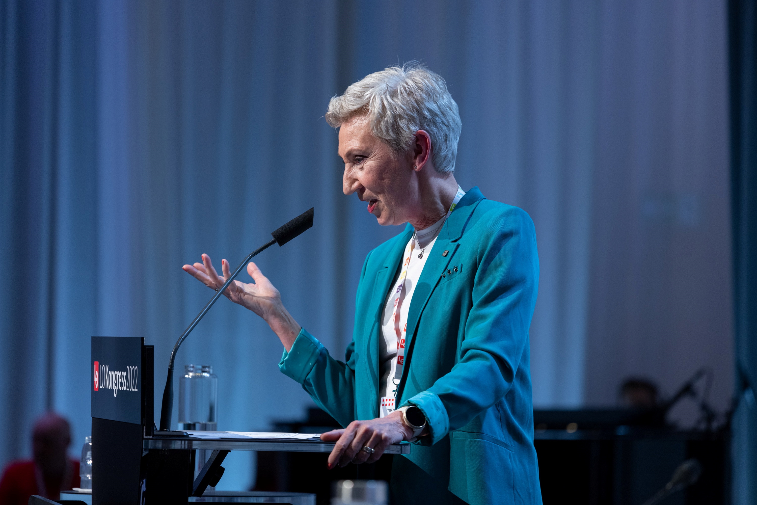 LO-leder Peggy Hessen Følsvik minnet om betydningen av å være til stede der regelverket lages og som skal bli en del av EØS-avtalen og dermed gjelde for norsk arbeids-, nærings- og dagligliv. LO-kongressens vedtak om EØS betyr at LO har det som sin faglige Europapolitikk.