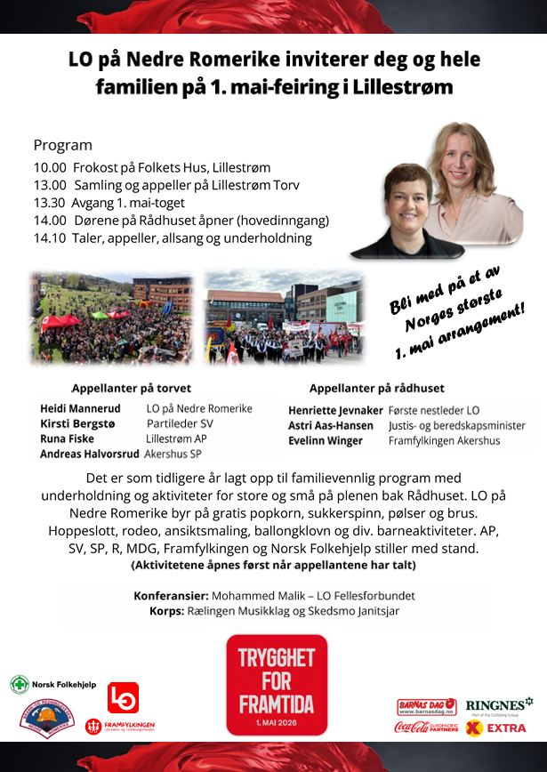 LO på Nedre Romerike inviterer deg og hele familien på 1. mai-feiring i Lillestrøm!