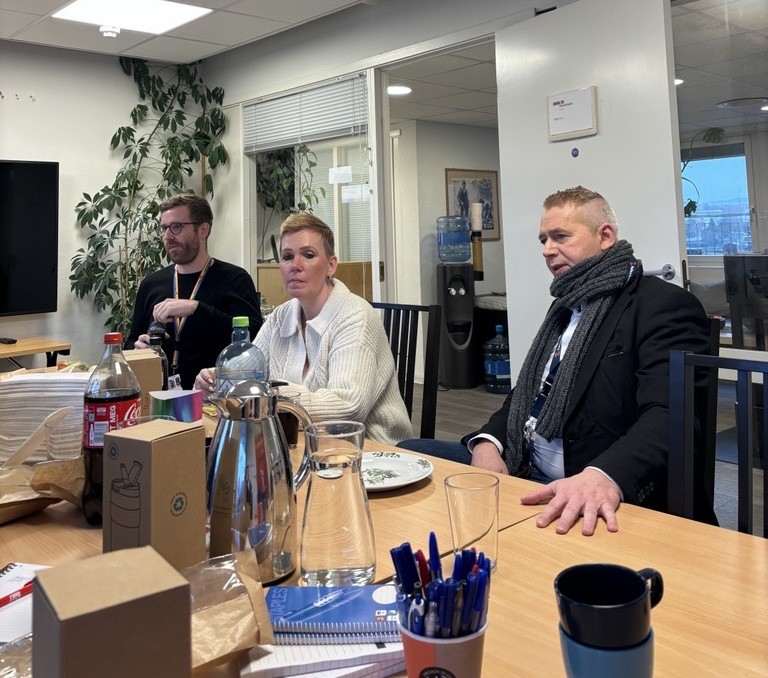 Etter dette møtte vi Fellesforbundet avd. 10 til lunsj. Her sto useriøsitet i arbeidslivet, sosial dumping og viktigheten av sterke fagforeninger høyt på agendaen. Tillitsvalgte delte konkrete erfaringer fra bransjer der kampen for rettferdige vilkår er helt avgjørende.
