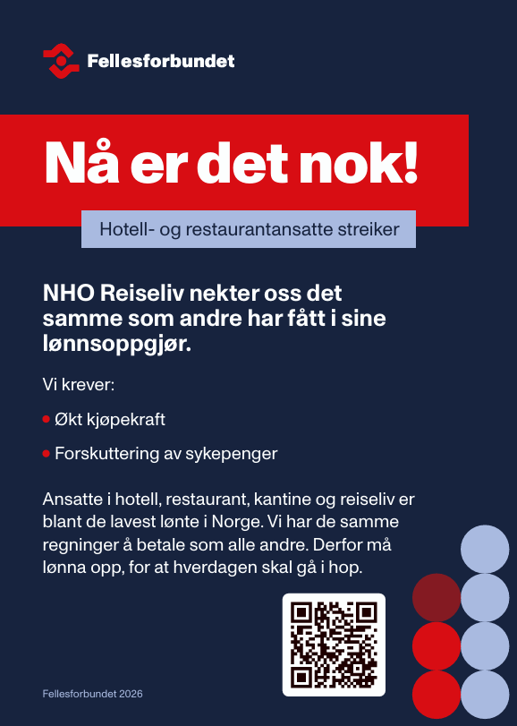 Ansatte i hotell, restaurant, kantine og reiseliv er blant de lavest lønte i Norge. De har de samme regninger å betale som alle andre. Derfor må lønna opp, for at hverdagen skal gå i hop.