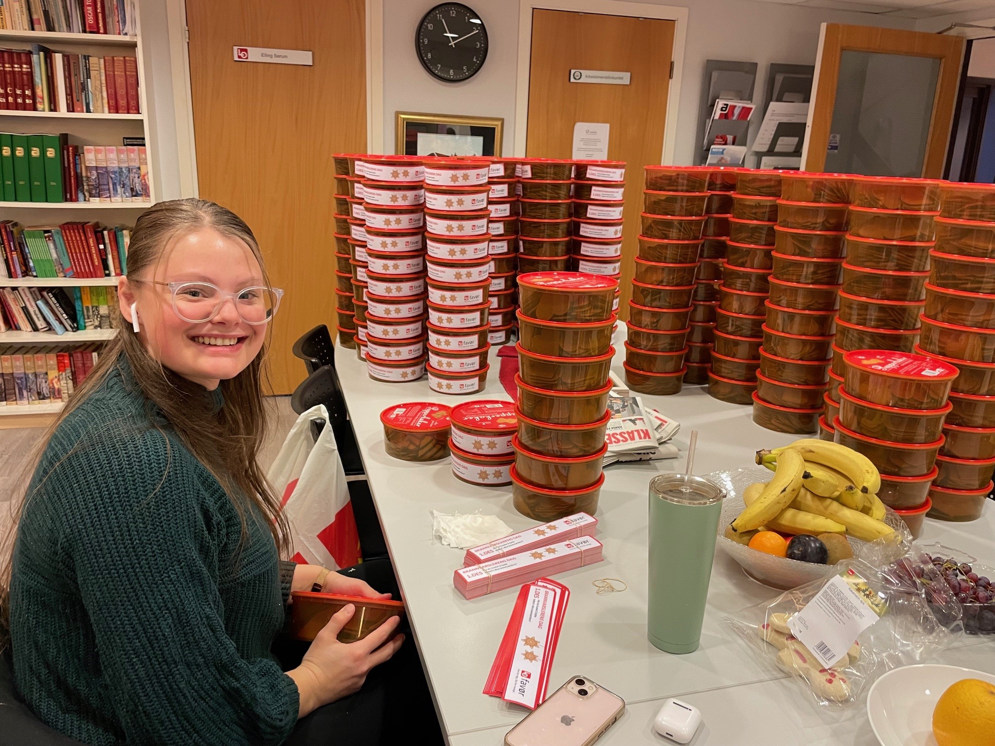 Vi har bestilt opp pepperkakebokser som kan deles ut på arbeidsplasser.