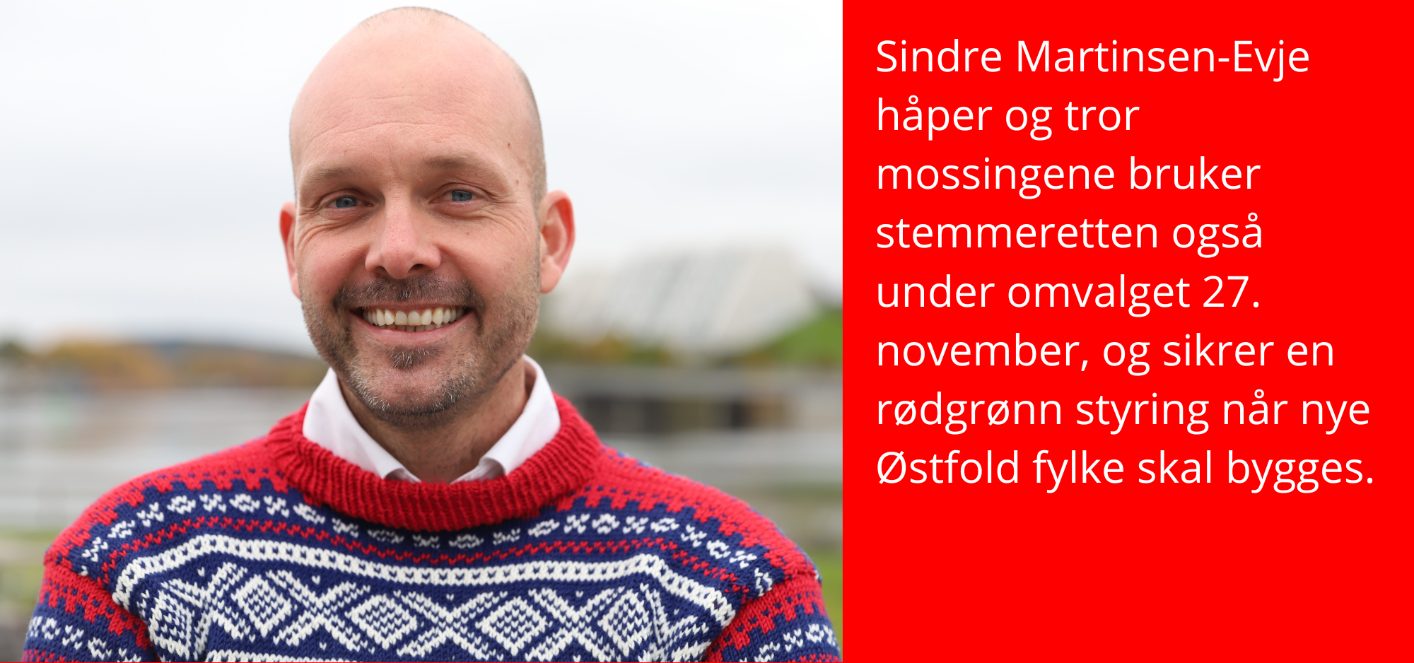 I omvalget handler det kun om fylkestingsvalget, og Sindres største oppfordring til mossingene er at de går til stemmeurnene en gang til. At ikke man tar det forrige valgresultatet for gitt.