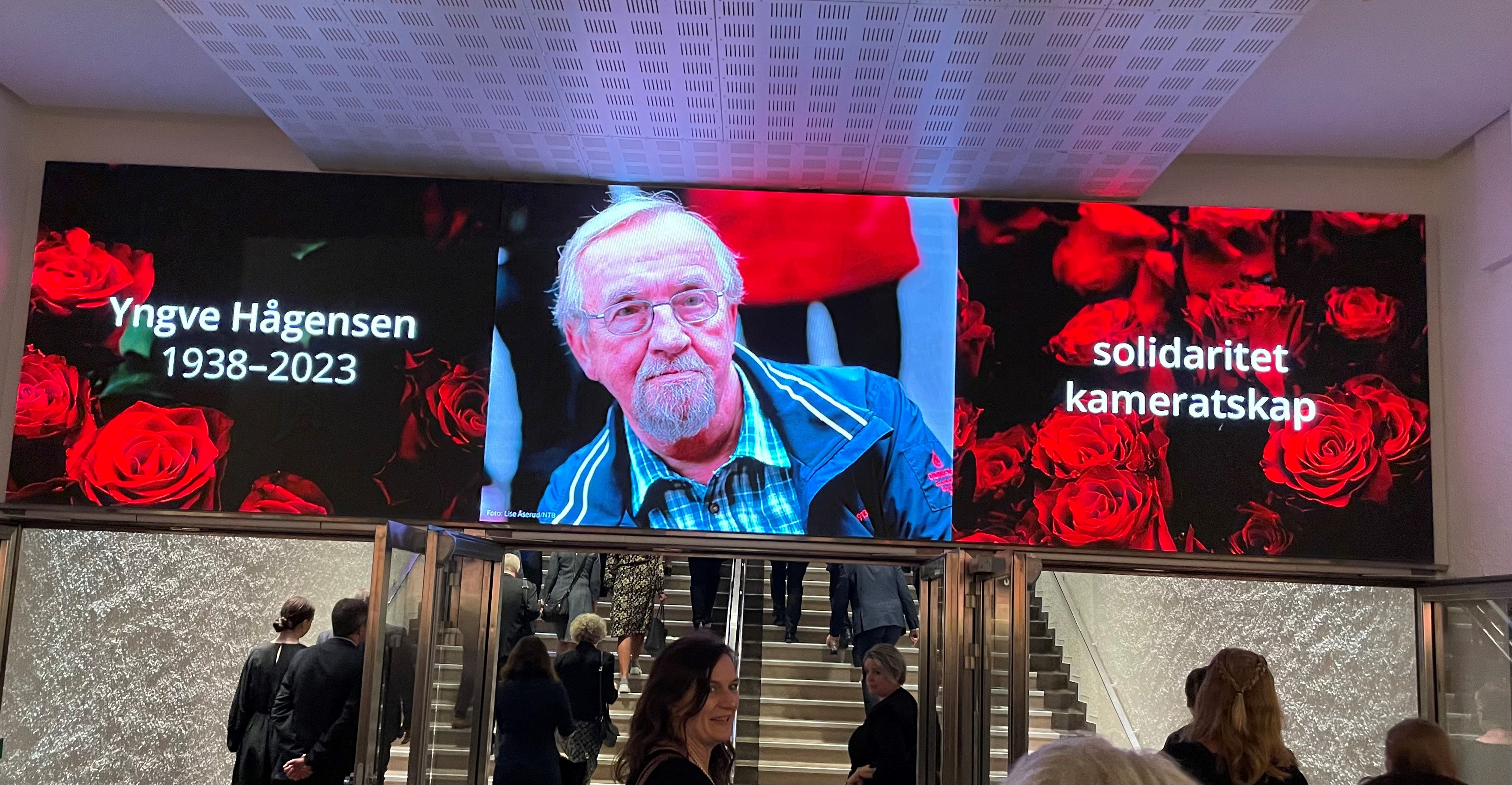 "-Ingen har noen gang tvilt på at Yngve sitt hjerte lå til venstre og slo sterkt og trofast for de som satt nederst ved bordet. Nå har dette store, varme og betydningsfulle hjertet stoppet. Yngve vil alltid bli i våre minner og i våre hjerter". Det sa LOs regionleder i Østfold Ulf Lervik i sin minnetale i minnestunden på Folkets Hus. Arrangementet ble holdt etter begravelsen i Oslo Domkirke 30/6. Du kan lese minnetalen her.