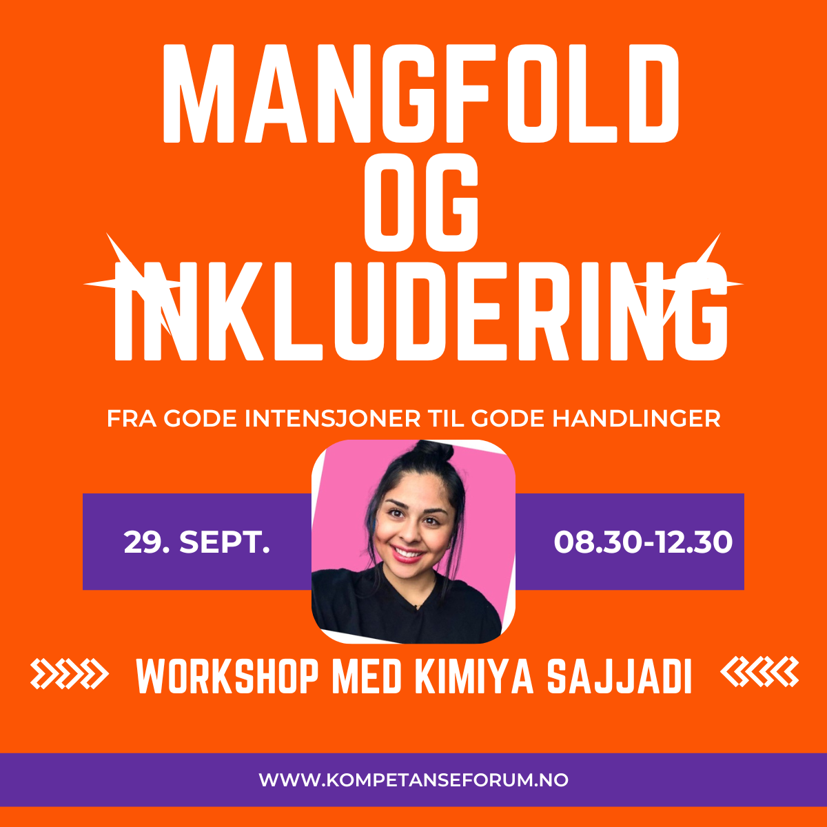 Mangfold og inkludering: Fra gode intensjoner til gode handlinger - en workshop med mangfoldseksperten Kimiya Sajjadi.