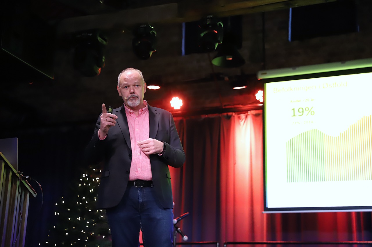 Tallknuser Ulf Andersen – statistikkdirektør i NAV – belyste dagens og framtidens arbeidsmarked i Østfold basert på fakta og befolkningsutvikling. I dag står én av fire østfoldinger i yrkesdyktig alder (20–66 år) utenfor arbeidslivet, kunne han fortelle.