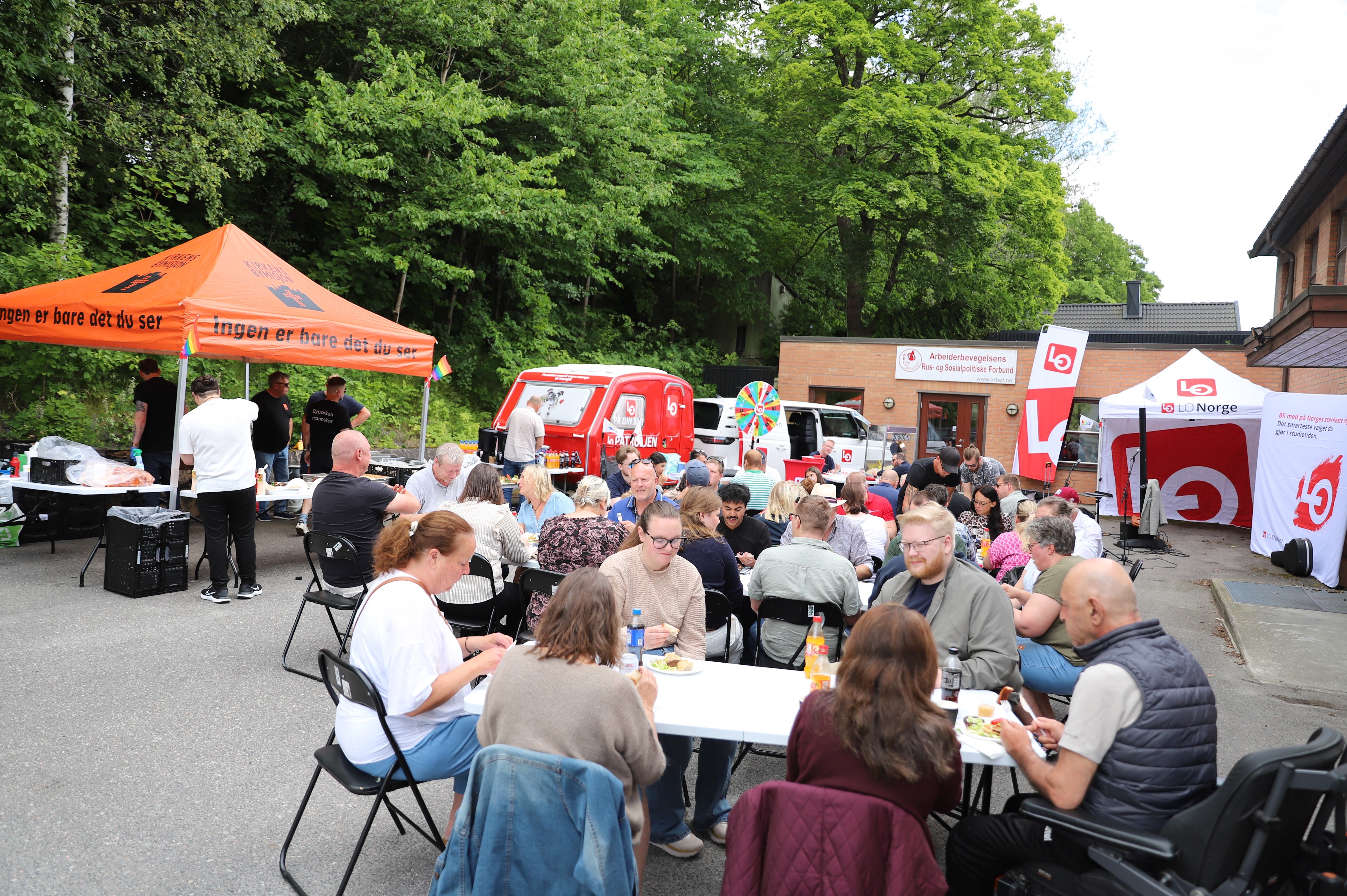 Kirkens Bymisjon Halden stilte mannsterke opp og sto for en svært omfattende og smakfull grillmatmeny, mens Bernt Torp var ettermiddagens konferansier og underholder. I tillegg var det rigget til med både lykkehjul og popcornmaskin.