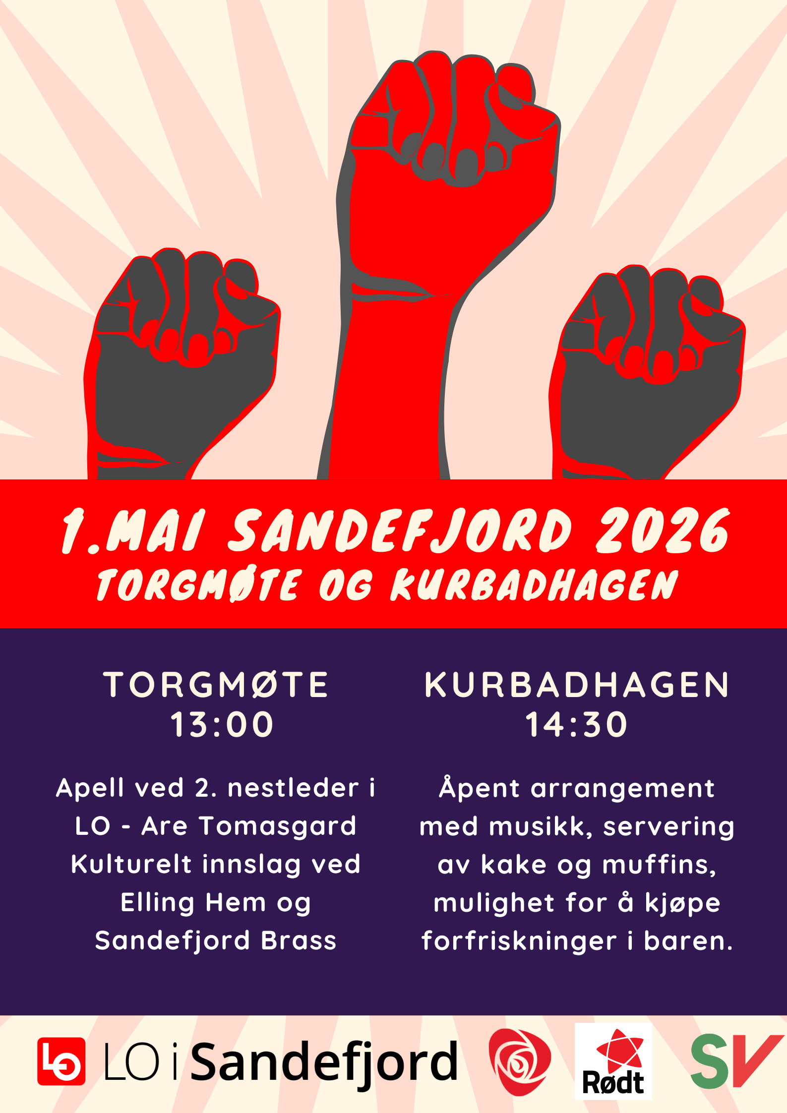 Kl. 15.00 samles vi på Kirketomta til Første mai tog. Det blir markering ved Fernanda Nissen statuen på Jens Lauersens plass, og etter toget blir det taler og appeller på Kirketomta. LO i Vestmar ønsker alle velkommen.