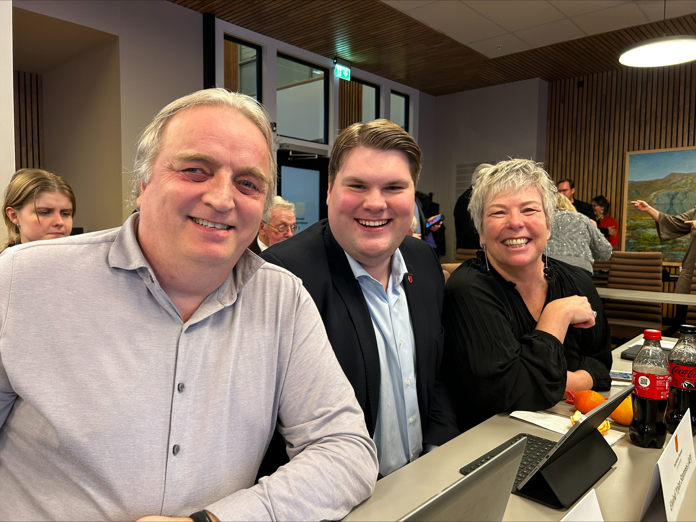 Regionleder Irene Bordier Haukedal, nestleder Harald Olsen og ungdomssekretær Eivind Yrjan Stamnes var alle møtende fylkestingsrepresentanter og deltok på det historiske møtet.