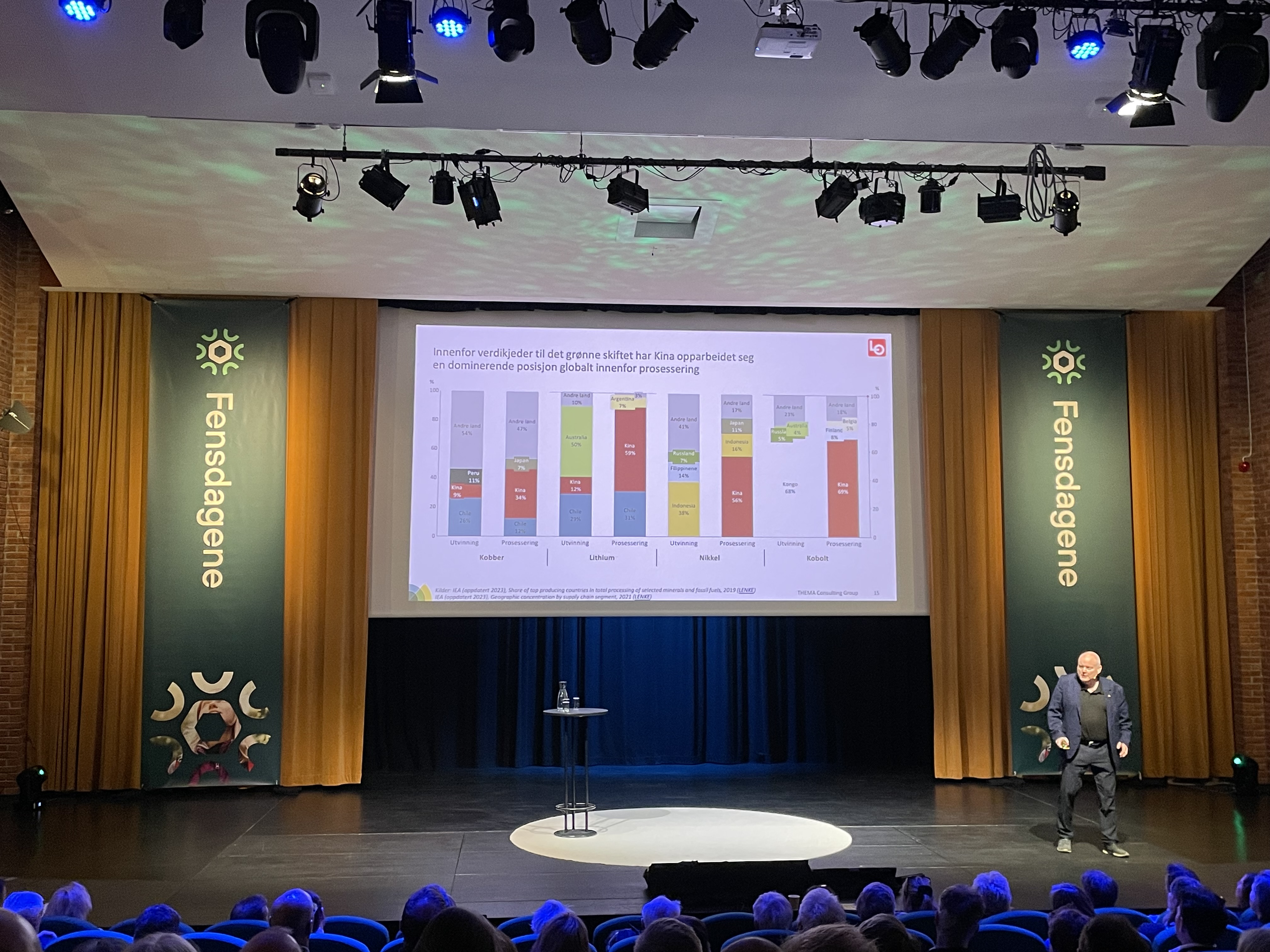 En av mange gjester var LOsekretær Are Tomasgaard. Han konsentrerte seg om hvor viktig tilgang til mineraler er i et globalt perspektiv. Det grønne skiftet er avhengig av sjeldne jordarter, og Norge og Europa kan ikke overlate til Kina å være eneleverandør av mineralene. LO heier derfor på Nome kommunes arbeide med å realisere Fensfeltet.