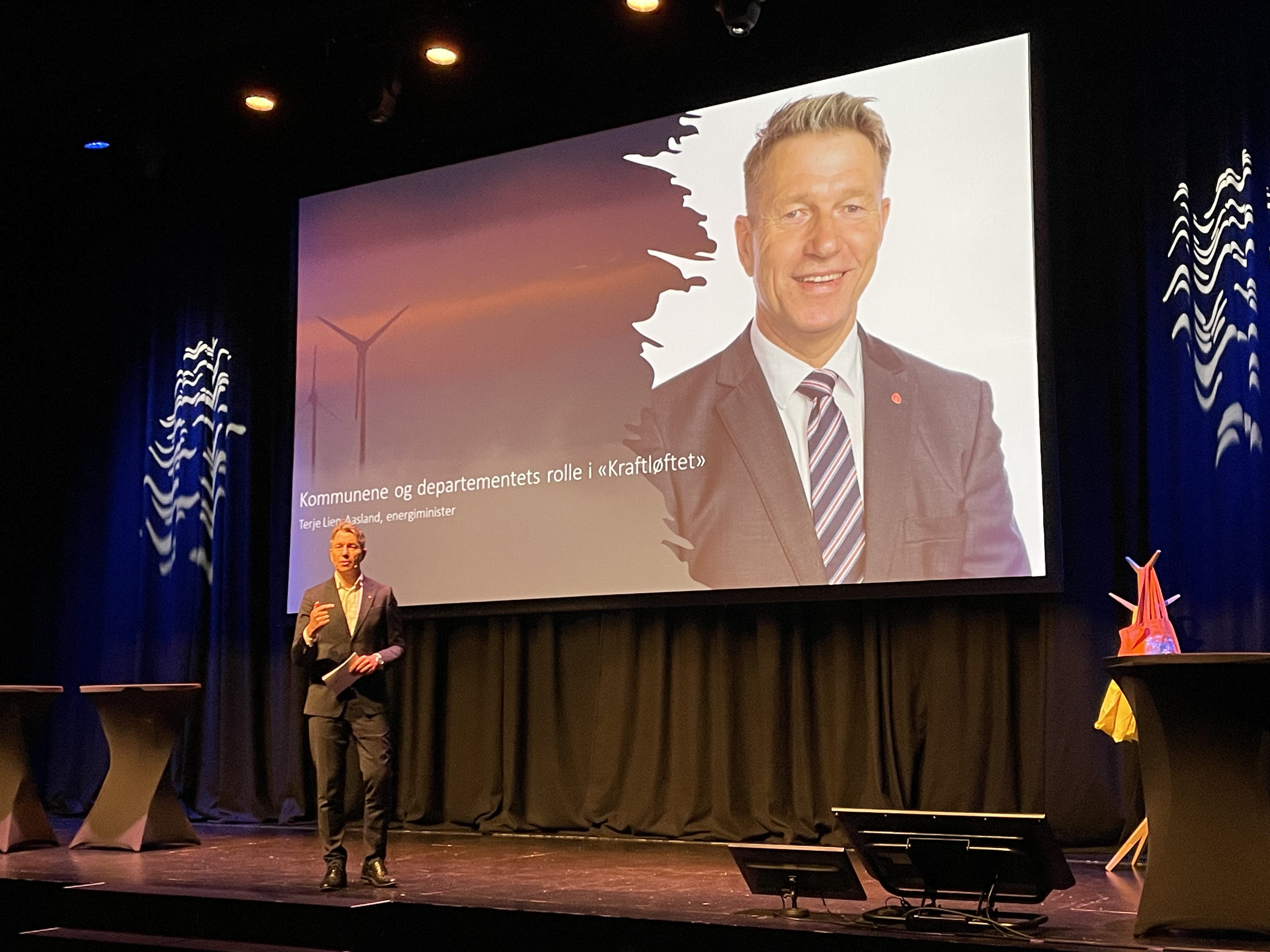 Terje oppfordret Statnett og de regionale nettselskapene om å planlegge og bygge nett i tide. Det er viktig med dialog med de som kan ha innsigelser så tidlig som mulig. Når NVE får en konsesjonssøknad burde den være så godt forberedt at det bare er å skrive under. Effektkapasitet av vannkraft kan økes. Sol blir kjempeviktig å få bygd ut raskt. Vind er det store problemet. Han viste til at systemet ivaretar kommunene, vi skal bygge ut med og ikke mot kommunene. Alle kommuner MÅ utforske hva de kan få til. Han brukte Porsgrunn som eksempel, en kommune som er vertskap for noe av landets største kraftforedlende industri og som ikke produserer strøm selv. Det er helt trygt å utrede mulighetene, kommunene kan si nei helt fram. Mer av verdi skal bli igjen i kommunen: 2,3 øre pr time går til kommunen, det er satt av 0,2 øre til naturformål. Kommunene skal få god bistand fra departementet for å vite mer. Vi har et stort vindraftpotensial i Norge uten å bygge ned natur. For å lykkes vil departementet ha med kommunene og næringslivet på laget. Kjernekraft er ikke løsningen på dagens behov.