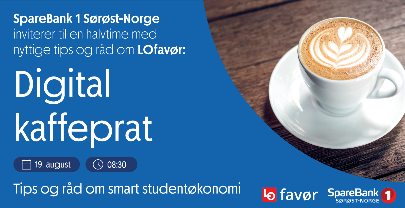 LOfavørkomiteen i Vestfold og Telemark inviterer sammen med SpareBank1 Sørøst-Norge til en digital kaffeprat 19. august kl. 0830 med det spennende tema: Tips og råd om smart studentøkonomi. Vi sender på facebook.
