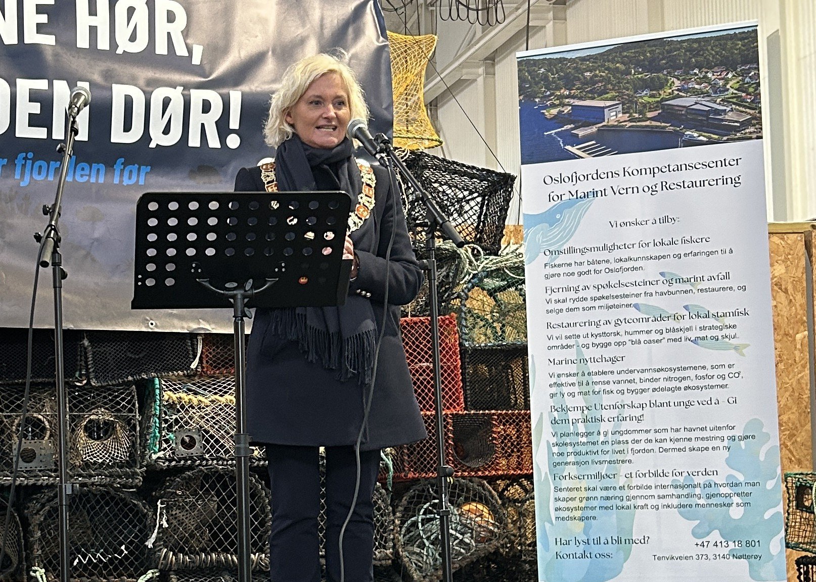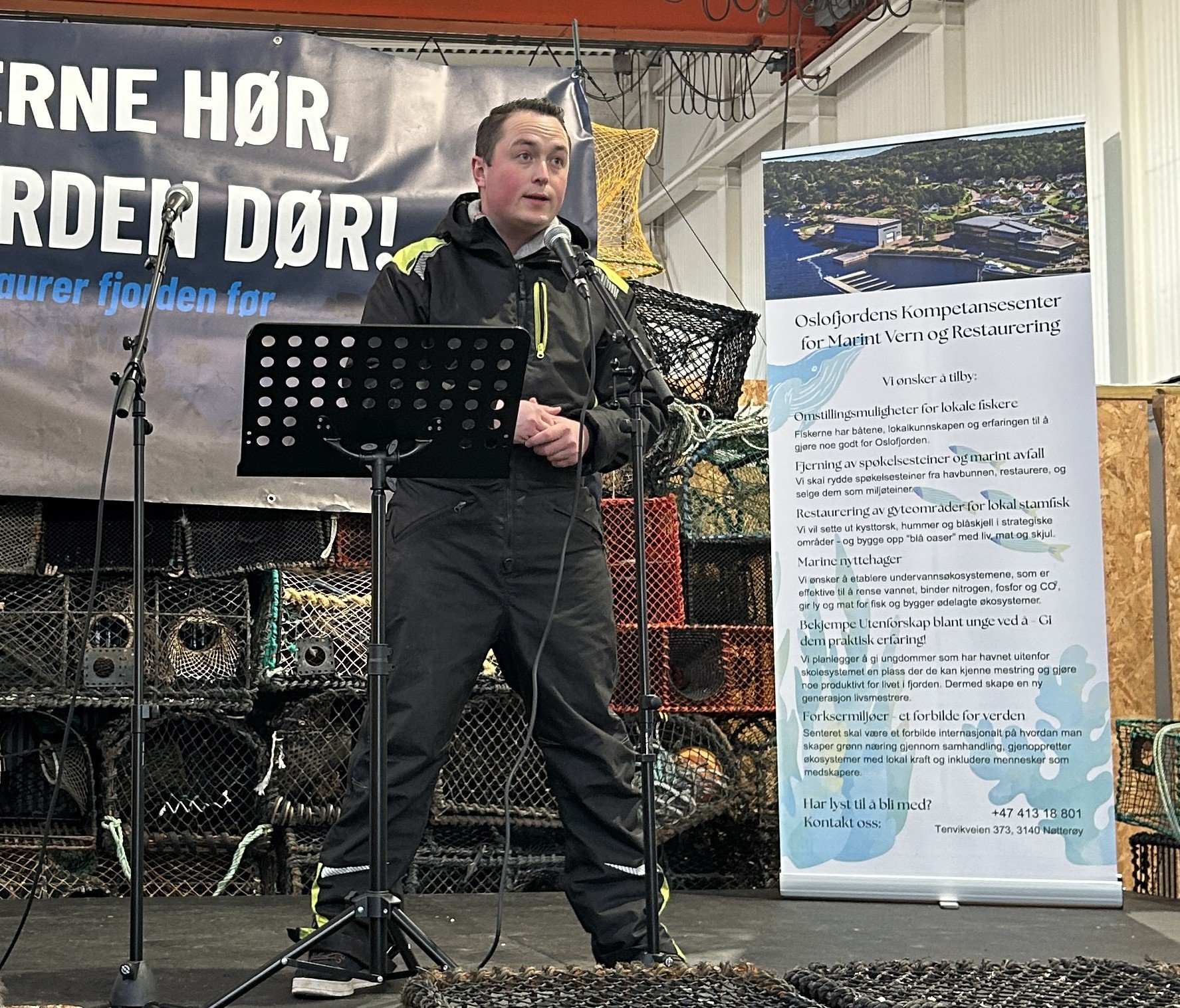 Færder Sjømat har etablert et kompetansesenter for vern og restaurering av fjorden. Leder Tobias Rosendal Bech fortalte hvordan de jobbet med å hente opp spøkelse teiner og søppel i havet.