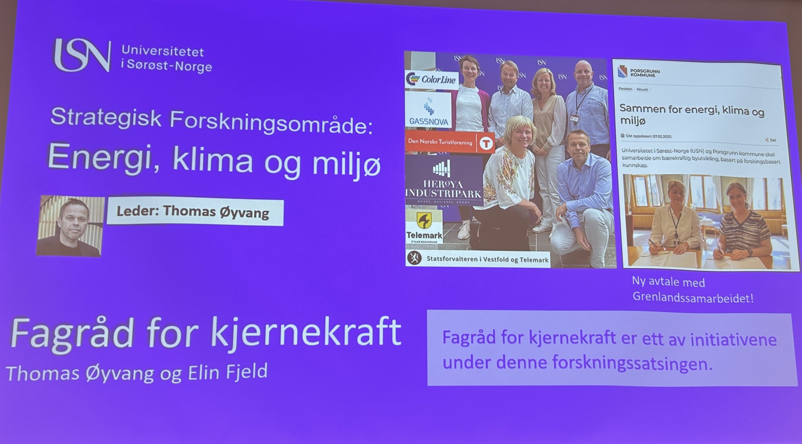 Statsråden fikk også presentert en rapport om atomkraft fra professor Thomas Øyvang. Universitet er nå med i det nylig etablerte fagrådet for kjernekraft.