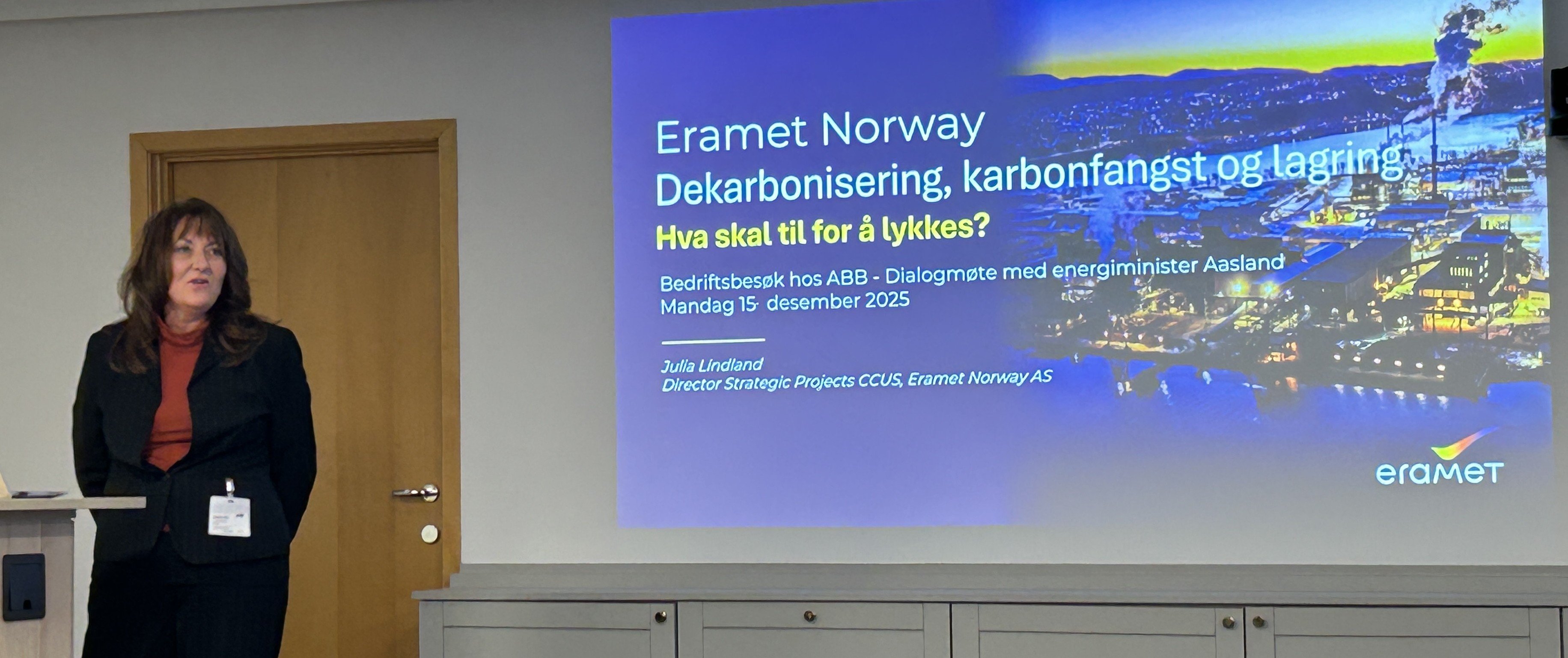 Julia Lindland fra Eramet pekte på at de trengte statlig støtte for å greie det grønne skiftet. Hun viste også til at det foreløpig ikke finns gode nok ordninger for lagring av mindre volum CO2. Disse tingene utfordret hun statsråden på. Statsråden svarte at de jobbet med å finne gode løsninger for lagring av mindre volum CO2.