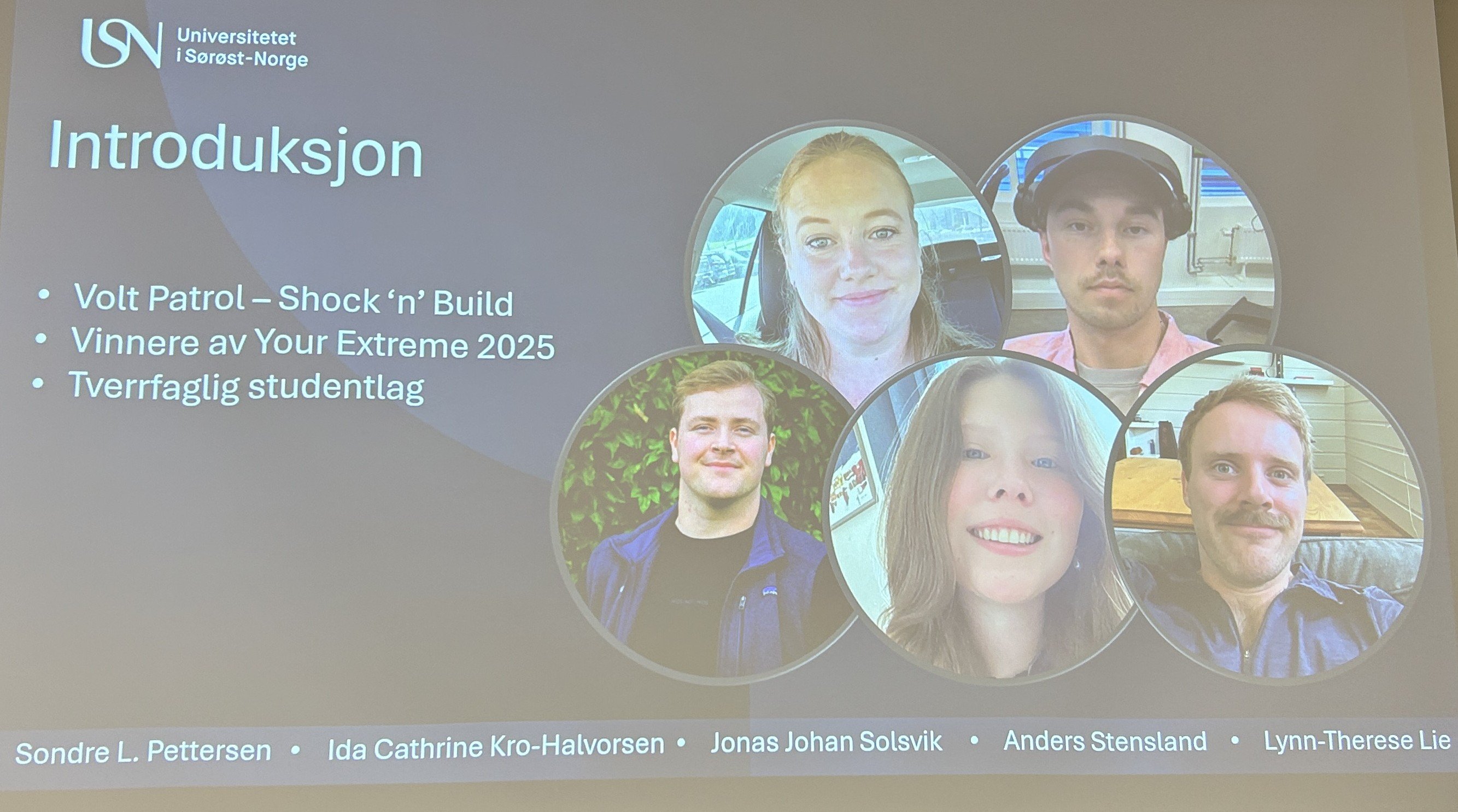 På universitetet fikk også Aasland møte studenter som hadde vunnet studentmesterskap med et prosjekt om nødstrøm via elektriske busser. De sikrer at dersom nødnettet detter ned på grunn av langvarig strømbrudd kan de kjøre inn elektriske busser og holde det igang.
