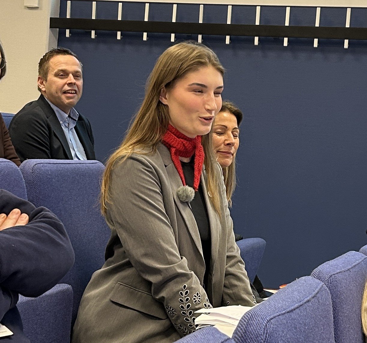 Den nye studentlederen Ada Margrethe Seim utfordret ministeren på hvorfor ikke studentsamskipnadene får Norgespris på strøm. Hun etterlyste også at studiestøtten skulle økes til 1,5 G.